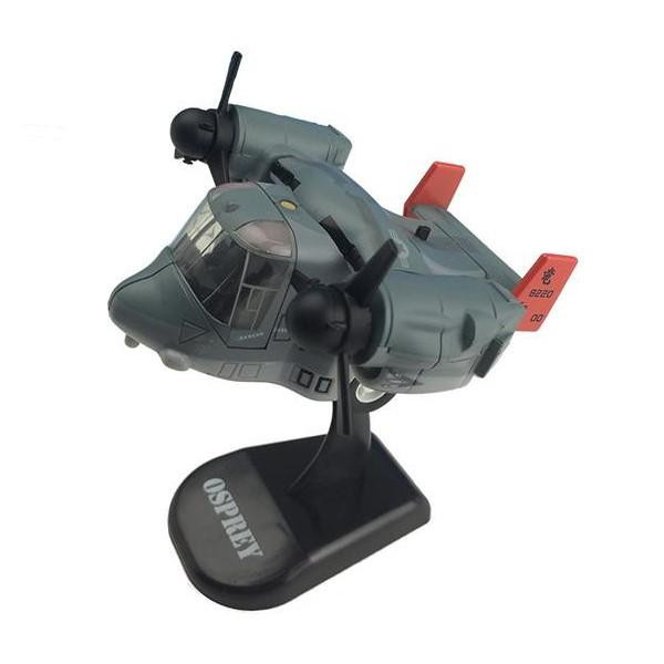 オスプレイをプルバックマシーンで再現しました。遊び終わった後は専用のスタンドを使用し、飾って楽しむこともできます。