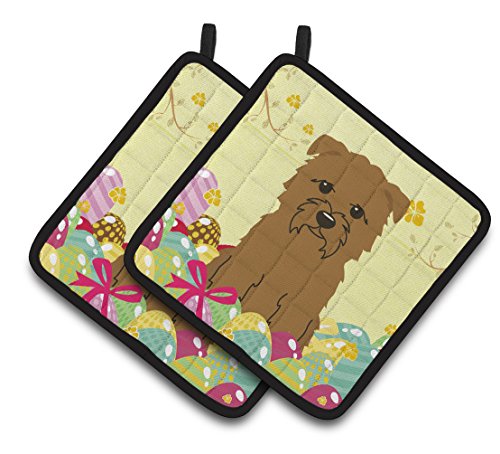 Caroline's Treasures Easter Eggs Glen of Imal Tan Pair of Pot Holders, 7.5HX7.5W, Multicolor