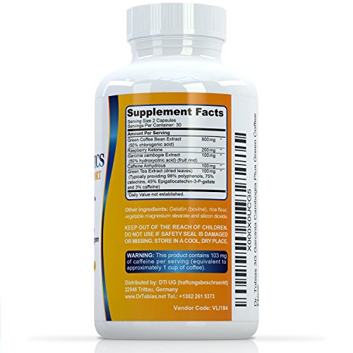 Dr. Tobias Gx3 Thermogenic with Garcinia Cambogia - Green Coffee - Green Tea - Raspberry Ketones (60)