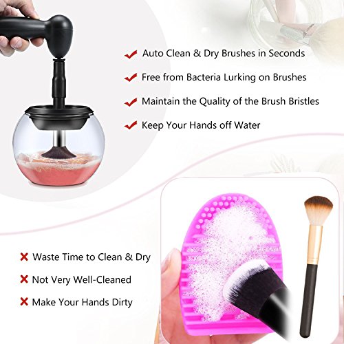 - [ Auto Clean & Dry ] Just in a few SECONDS, your makeup brushes are immediately ready to re-use. Ailaiya electronic makeup brush cleaner auto cleans and dries makeup brushes deeply. In addition, the upgraded V2.0 design makes it more convenient and less labor-consuming to clean and dry brushes.