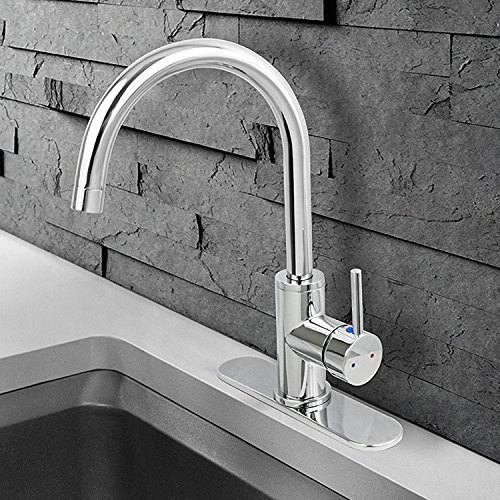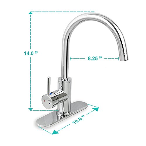 Everflow Kitchen Faucet Single Handle Single Hole Mount Chrome Plated Finish Designer Faucet 17811-NL, with Ceramic Disc Lead-Free Construction