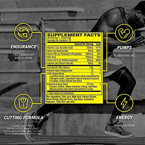 ReleaseDate : 2016-02-19 Studio : Cellucor Nutrition Publisher : Cellucor Nutrition Binding : Health and Beauty Product Description C4 Ripped is a pre-workout that combines the explosive energy of C4 with ingredients specific to fat loss. This formula helps you train harder while supporting your body’s ability to burn fat. If you have ever been on the hunt for a Creatine-free workout, C4 Ripped is your formula. Our proprietary formulated Ripped Blend is designed to enhance fat loss by harnessing the power of L-Carnitine, Green Coffee Bean Extract, Capsimax Cayenne Fruit Extract and Coleus Forskohlii Root Extract. 0