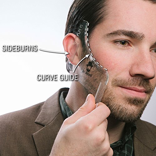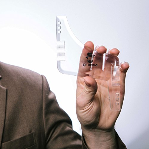 Dr. Beard is a transparent template guide for shaping and grooming the modern facial hair and beard with built in combs and dynamic curved and straight-edged templates, trimming and creating smooth-edged lines for a sophisticated look is quick, easy and affordable