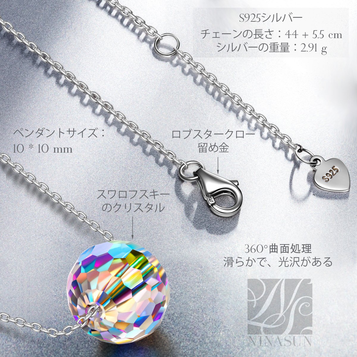 材質 スワロフスキーのクリスタル, S925スターリングシルバー