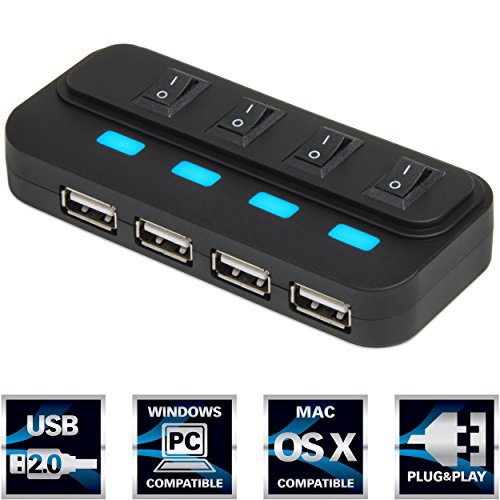 Description Add up to 4 peripherals quickly and easily with the Sabrent 4-Port USB 2.0 Hub. The thin, lightweight design with hide-away cable, makes this hub a great travel companion to expand one USB 2.0 port into four. Especially great for notebooks which come with only a few ports in an era when you need to attach many USB devices at once, such as a printer, card reader, cell phone, iPod, thumb drive, mouse, keyboard, or an external hard drive. Achieve full 480 Mbps on each port, or daisy chain multiple hubs to a maximum of 127 devices. Fully backwards compatible with the USB 1.1 products. Included LED indicates activity. It is possible that the computer will not provide enough power for some power-intense USB devices, so you may require an AC-Power Adapter.