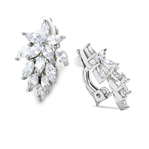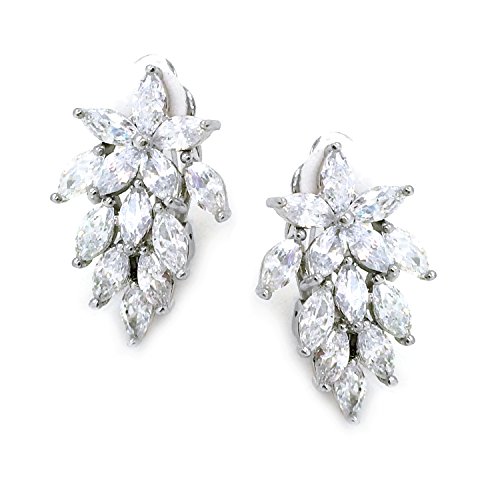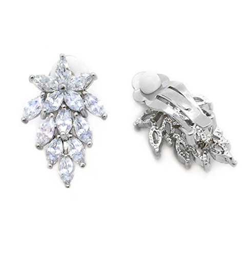 Made of brass with rhodium plated, these delicate bridal earrings are set with sparkling cubic zirconia stones. A cluster of marquise shaped CZs form a beautiful flower setting. A clip on backing ensures these earrings can be worn by you or any of your bridesmaids regardless if their ears are pierced or not. These lovely earrings will make the perfect choice for your special someone for Valentine's gift, Christmas gift, Mothers day gift, Birthday gift, Anniversary Gift, or Bridal party gifts.Feature