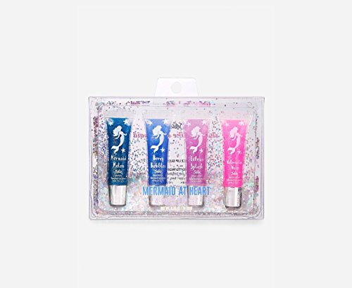 Under-the-sea shimmer and shine Glitter lip gloss quartet. Featuring watermelon, berry, citrus and melon scents