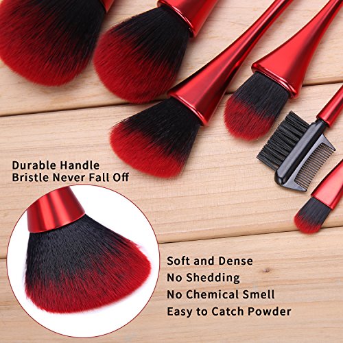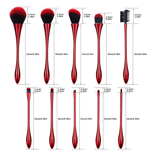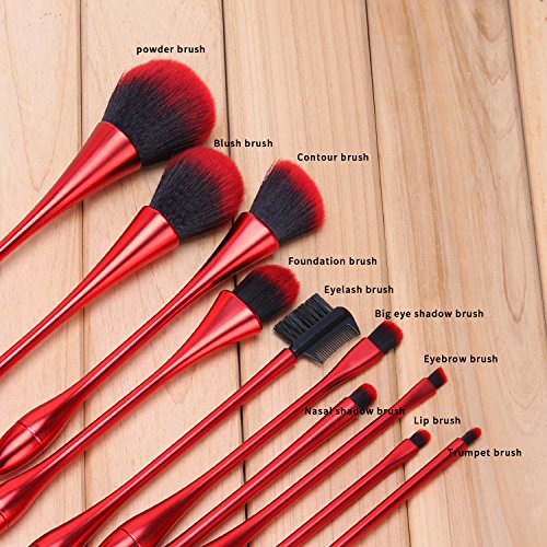 - Unique Eye-catching Design, Professional Choice: Fed up with dull looking makeup brushes in the market? This red makeup brushes set get inspiration from elegant and luxurious wine goblet. The mellow end offers great sense of balance and weight in hand. Design not only for esthetics but also for real use.