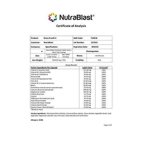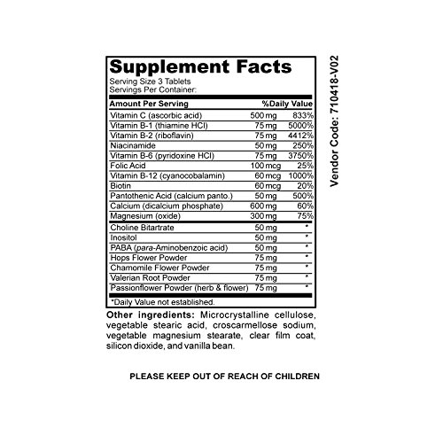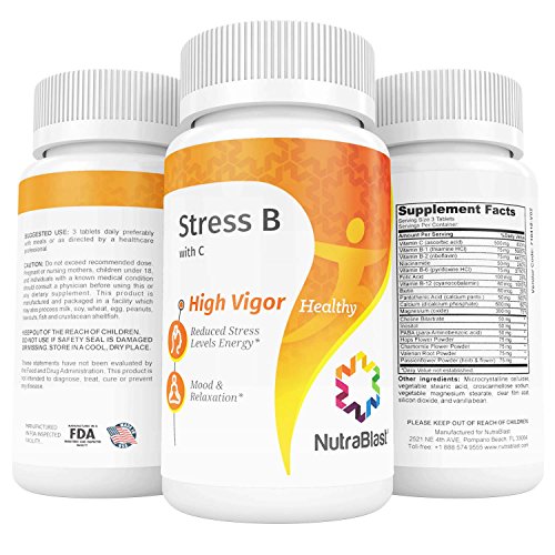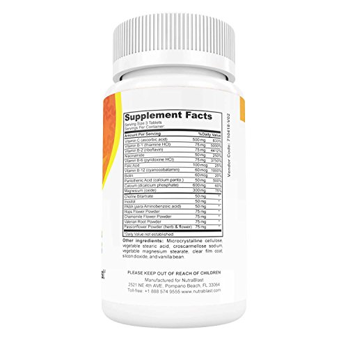 -. Title : NutraBlast Vitamin B & C Complete Stress Support w/ Biotin, Folic Acid, Calcium, Magnesium, Chamomile and Herbal Complex - Supports Mood, Relaxation, and Heart Health - Made in USA (90 Coated Tablets)