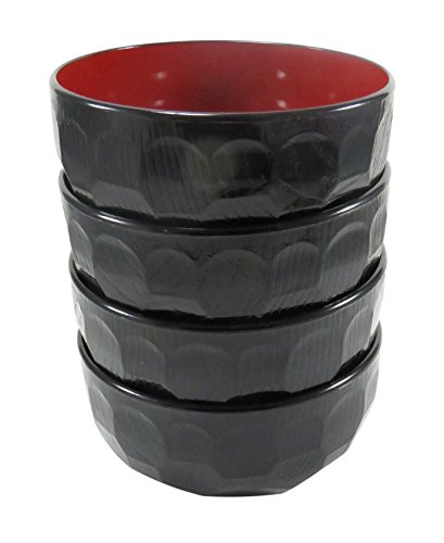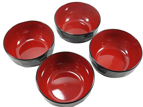 Japanese Soup Salad Lacquer Bowl 5 3/4 x 3 Tortoise Shell Red Black (Set of 4)