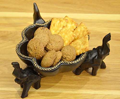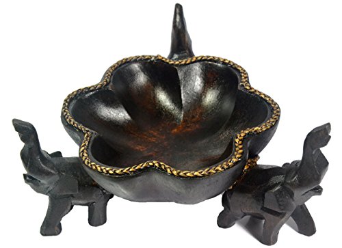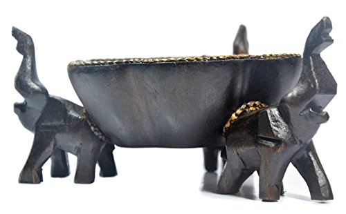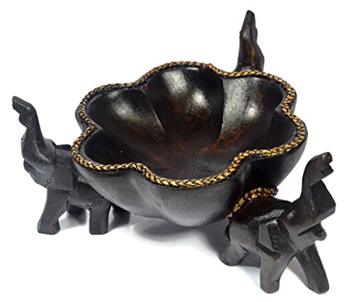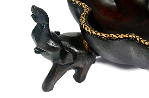 Thai Elephants Wood Carved Candy Cookies Bowl Holder Countertop Dining Room Spa Restaurant Home Decor