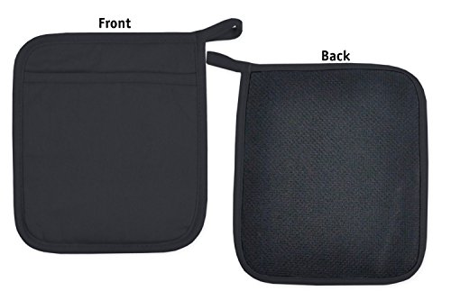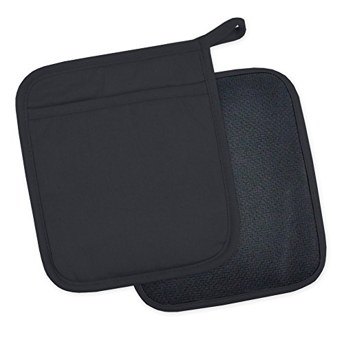 DII Cotton and Neoprene Pot Holders , 7 x 8" Set of 2, 425°F Heat Resistant and Machine Washable for Kitchen Cooking and Baking-Black