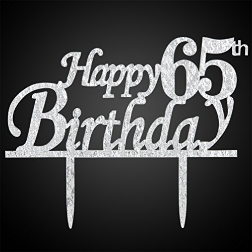 Happy 65th Birthday Cake Topper - 65 Happy Birthday Silver Glitter Party Cake Decorations