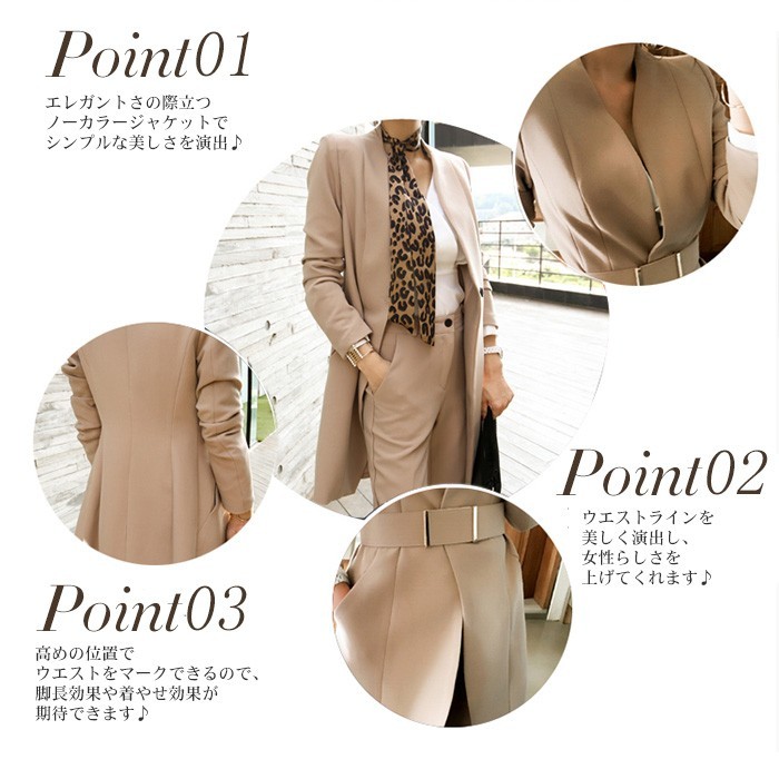 S バスト79 (トップス)ウェスト79 肩幅34 着丈77 パンツ丈96 (パンツ)ウェスト67 ヒップ89 M バスト82 (トップス)ウェスト82 肩幅34.5 着丈77 パンツ丈96.5 (パンツ)ウェスト71 ヒップ92.5 L バスト85 (トップス)ウェスト85 肩幅35 着丈78 パンツ丈97 (パンツ)ウェスト75 ヒップ96 XLバスト89 (トップス)ウェスト89 肩幅36.5 着丈78 パンツ丈97.5 (パンツ)ウェスト80 ヒップ99.5