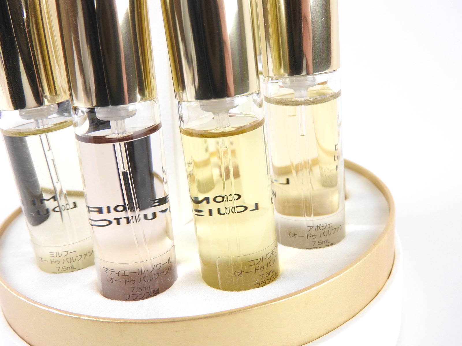 | Comes with | Original box and case, Atomizer, Manual, Perfume bottle×8(ROSE DES VENTS, TURBULENCES, DANS LA PEAU, APOGEE, CONTRE MOI, MATIERE NOIRE, MILLE FEUX, EAU NEUTRE) |