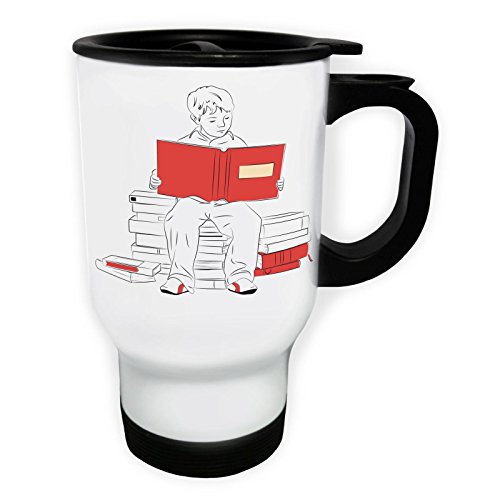 -. Title : Boy Reading Book Novelty Funny White Thermo Travel Mug 14oz b208tw