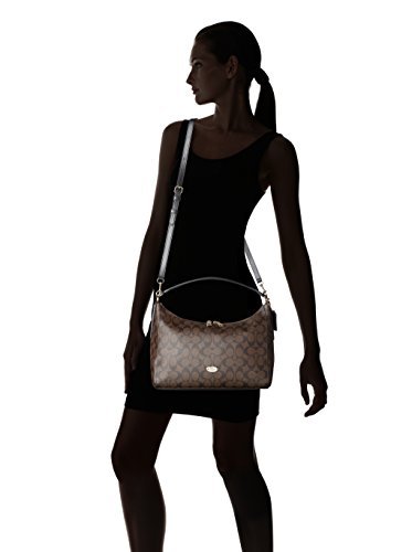 -. Feature : 2015 Coach Signature East/West Collection, Authentic, Purchased Directly From Coach / Signature canvas material with leather straps and accents / Features zip-tope closure in gold plated hardware / Fabric lining with cell phone and multifunction pockets / Longer strap with 20" drop for shoulder or crossbody wear