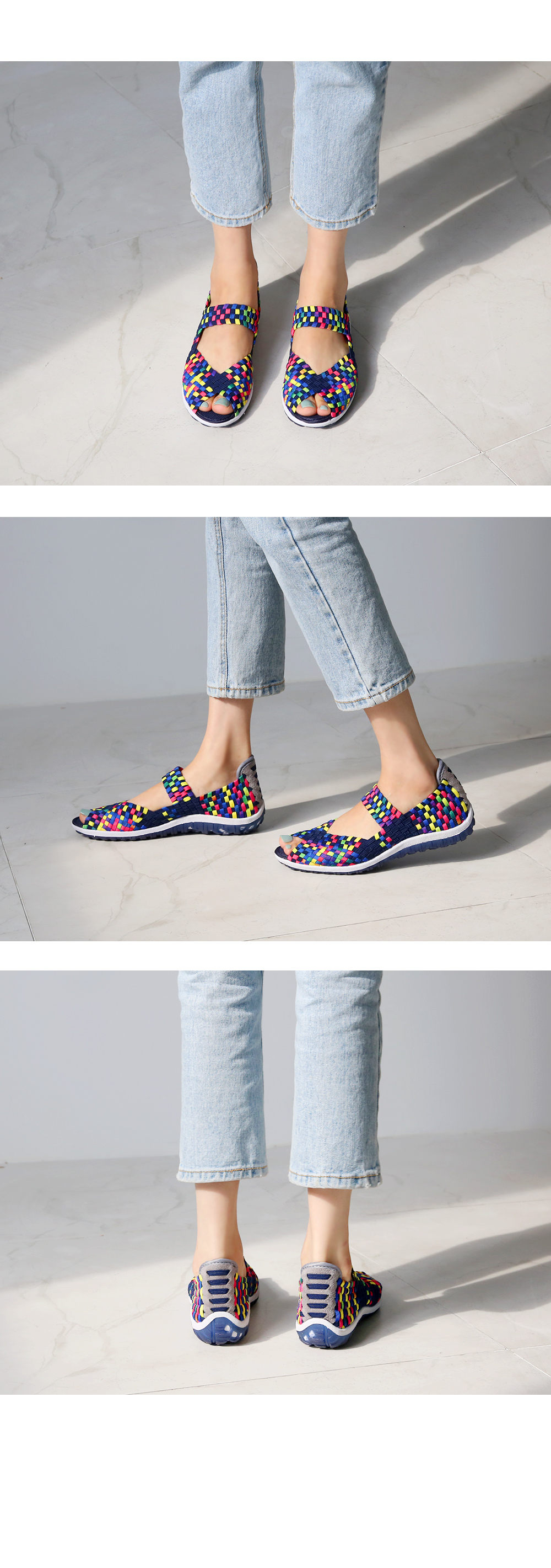 DETAILS - 소재 : 패브릭 - 컬러 : beige,navy,redmix,navymix - 피팅감 : 정사이즈 / 무게 : 보통인편 - 착화감 : 편해서 데일리 슈즈로 좋아요 - 모델피팅 : 235(37)