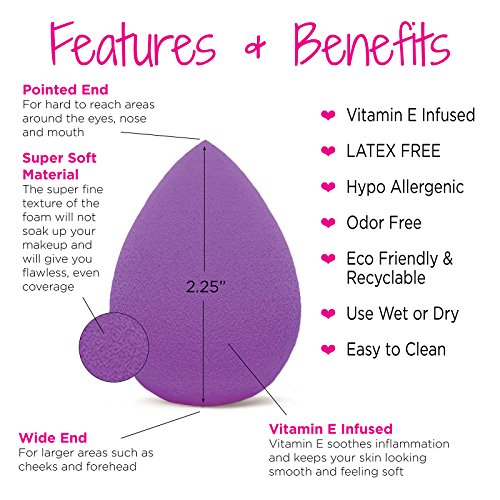 -. Feature : SUPER SOFT! LATEX-FREE, ODOR-FREE and HYPO-ALLERGENIC! Made from the highest quality, softest foam material available. They expand to almost double size when wet. These are not hard, dense or rubbery like some of the other sponges out there. And they won't soak up your makeup or just smear it around. / THE SECRET TO A FLAWLESS, AIR BRUSHED COMPLEXION! SAVE TIME & MONEY! This is the SECRET WEAPON of PROFESSIONAL makeup artists everywhere. The super fine texture of the foam won't soak up your expensive makeup like traditional wedge sponges, which saves you money. And you can apply your foundation quicker and more evenly than with a traditional foundation brush. / WASHABLE, RE-USABLE, ECO-FRIENDLY and RECYCLABLE. These re-usable sponges are super easy to clean and should last about three months with normal use and proper care. Just recycle them when they wear out and purchase a fresh set. / MONEY BACK GUARANTEE: Jouvenet Beauty offers complete customer satisfaction and a full refund within 30 days if you are not completely satisfied. Our customers are very important to us and we are always available to answer any questions or concerns you may have. CONTACT US directly and we will take care of you. We love our customers! / INSTRUCTION SHEET and E-BOOK INCLUDED: Never used a beauty sponge before? No problem. With your purchase you get a step-by-step instruction sheet that shows you exactly how to use and care for your sponges. Also included is our exclusive E-Book which features step-by-step instructions on how to Highlight & Contour using your sponges. This also makes a great gift!