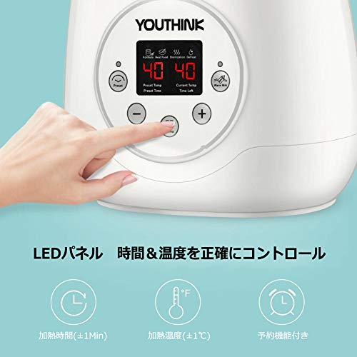 2.沸騰させたお湯か湯冷ましと哺乳瓶をセットして、いつでもすぐに粉ミルクを作られ、夜間授乳には大変便利です。温度を40-70℃付近で加熱できます。調乳適温になってからそのまま24時間保温して自動電源オフにします。