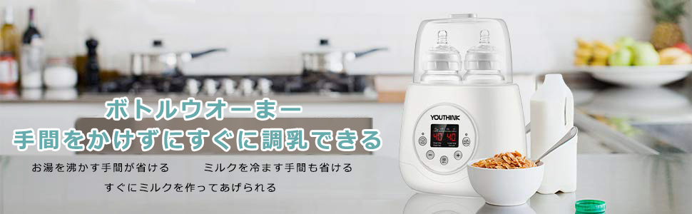 1.ミルクを入れた哺乳瓶をセットすると40℃付近で加熱するのは3分ぐらいかかります。お湯を沸かす手間やお湯を適温まで冷ます手間が大幅に軽減できます。
