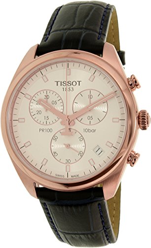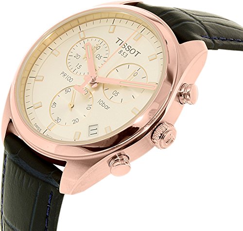 -. Title : Tissot PR 100 Chronograph Gent Silver / Rose Gold / Navy Blue Leather Analog Quartz Men's Watch T101.417.36.031.00