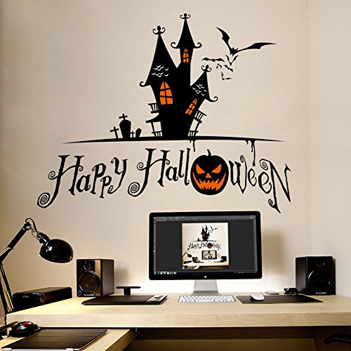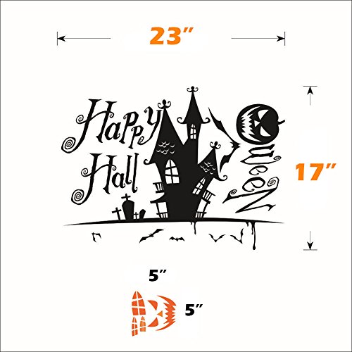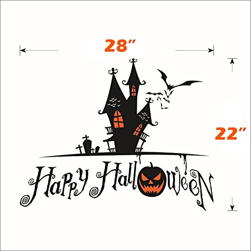 Dnven (28"w X 22"h) Happy Halloween Spooky Cemetery Castles Bats Tomb Pumpkin Face Wall Decals Window Stickers Halloween Decorations for Kids Rooms Nursery Halloween Party