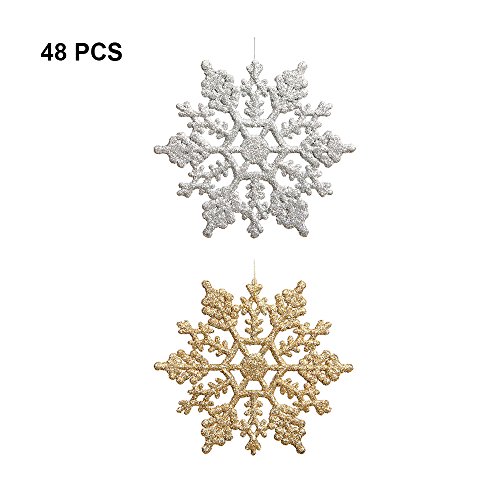 Gold and Silver Glitter snowflakes, set of 48 snow flake ornaments.In this combo pack you will receive : 24 of 4" Gold, 24 of 4” Silver snowflakes