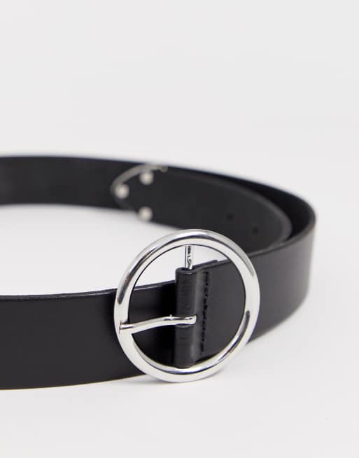 ASOS Leather Circle Buckle Jeans Belt with Tipped End