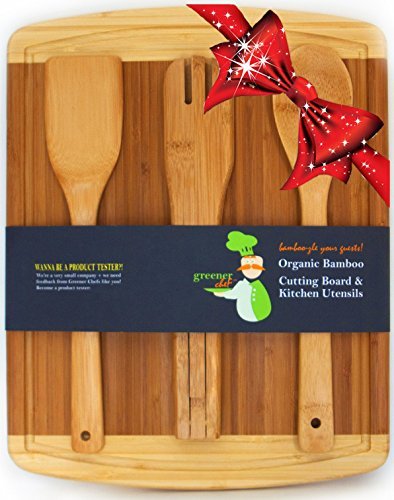-. Title : #1 Perfect Wedding, Housewarming, or Birthday Gift Set | Bamboo Cutting Board with Best 3-Piece Kitchen and Cooking Wood Utensils | Wooden Spoon, Salad Tongs & Spatula by Greener Chef