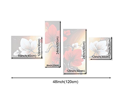 This Flower Wall Art size is 30x40cmx1,20x60cmx1,30x60cmx1,30x30cmx1(12x16inchx1,8x24inchx1,12x24inchx1,12x12inchx1). Pls check carefully about the painting size to make sure that it is fit for the space you want to hang on