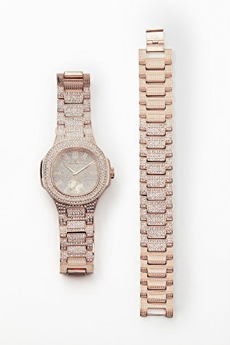 Hip Hop Bling Bling Watch w/ Matching Bracelet in Gift Box