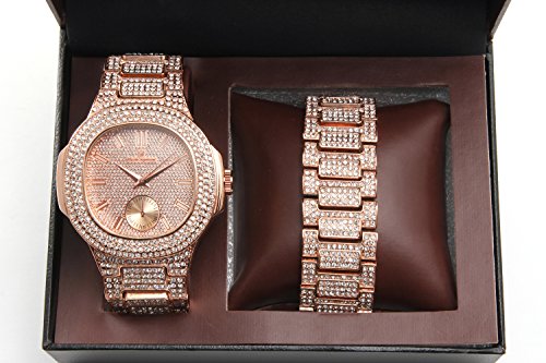 Rappers Favorite Hip Hop Bling Bling Watch with Matching Bracelet - Case and Band Iced Out Mens Watch in a Dope Gift Box