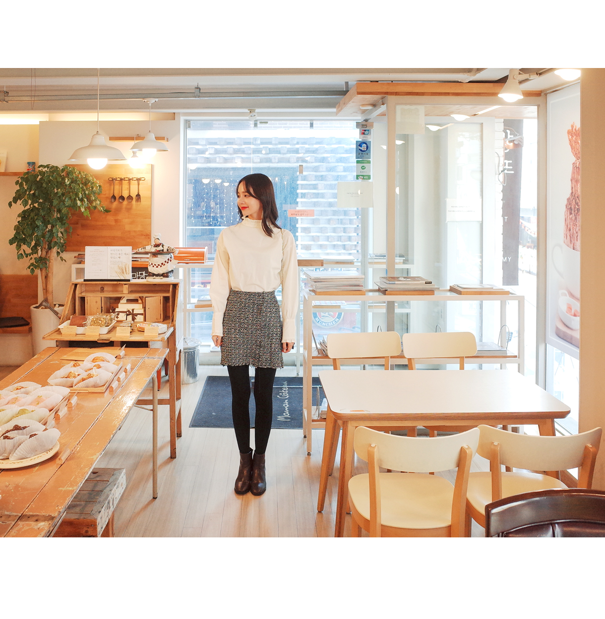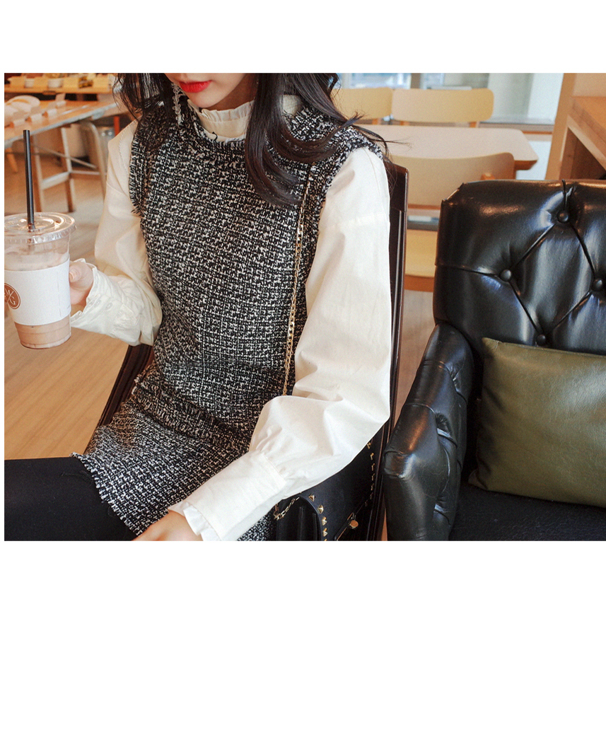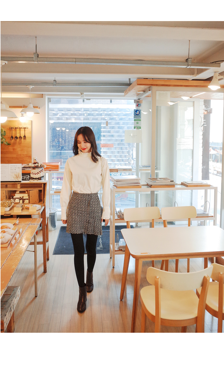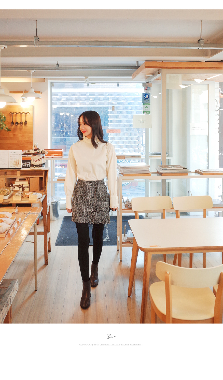 넥라인에 프릴디테일이 여성스러우며