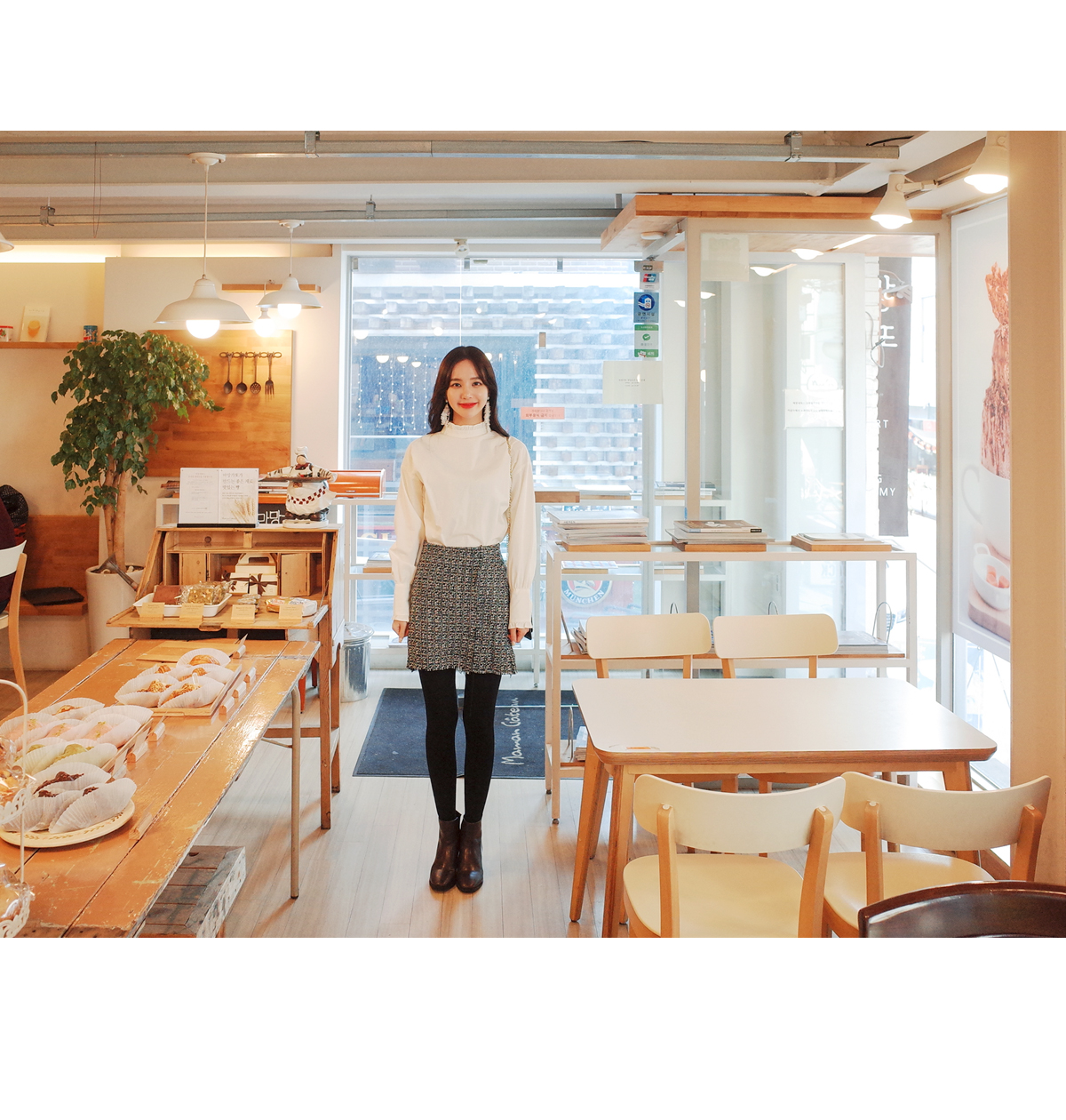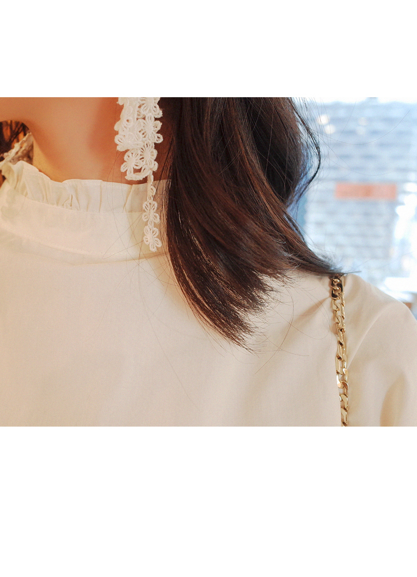소매와 넥라인이 사랑스러운 블라우스입니다