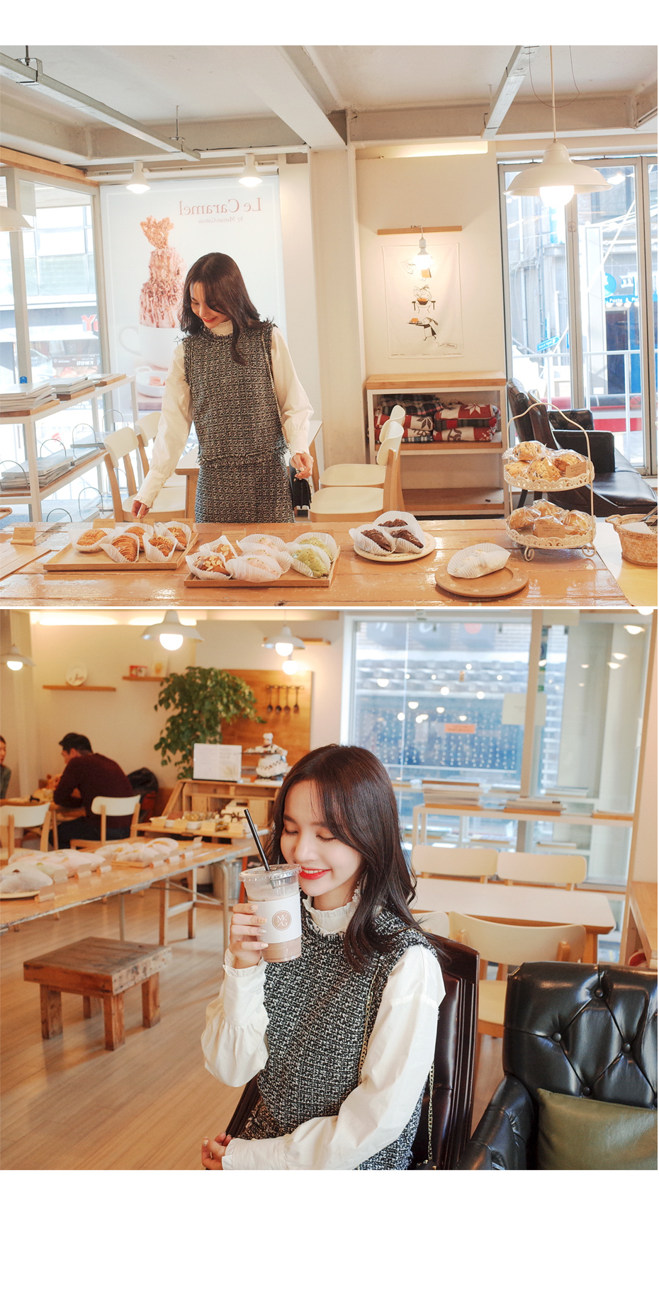 소매부분도 셔링이 있어 나팔로 떨어지는 포인트 디테일이 예뻐요