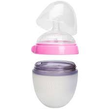 Comotomo is thrilled to present you with their fully evolved baby bottle. Some mommy aficionados labeled it ?Breastfeeding in a Bottle.? They just like to think that it?s the next best thing to mom. Our babies are one choosey connoisseurs when it comes to feeding time. So they designed their bottle to naturally mimic breastfeeding as much as possible. The proof is in the smiles. Conventional thought is that bottles should be hard like all those other ?containers?. But that?s so opposite from natural breastfeeding! Comotomo just couldn?t let this one slide. So they made their bottles as soft and skin-like as possible while being a little squeezy too! For their bottles, they carefully chose 100% medical grade hygienic silicone, which is about the safest material you can find. The bottle is designed with a super-wide mound and naturally shaped nipple to help your little one make a seamless switch and latch on easily! Plus the design includes not one, but two vents to completely eliminate unnecessary air-intake. Say goodbye to colic! The bottles have a super-wide neck so that you can easily clean by hand. Added bonus? Silicone is extremely resistant to heat. You can boil them to sterilize, or put them in a dishwasher for a bit more "me-time." The naturally shaped, soft silicone nipple is ideal for babies who have trouble transitioning from nursing to bottle-feeding, and features an innovative and sensible design to most closely mimic natural breastfeeding.Feature