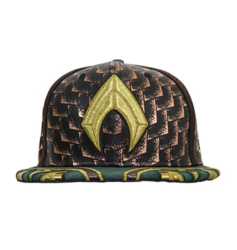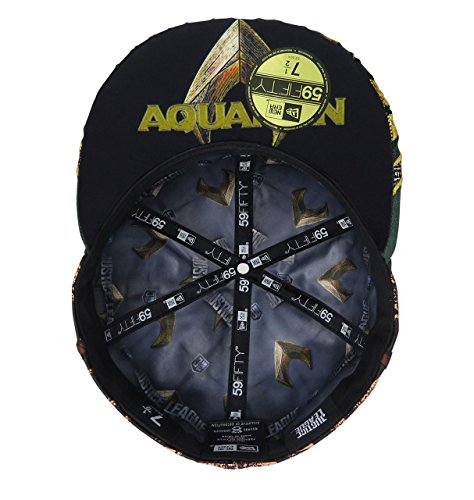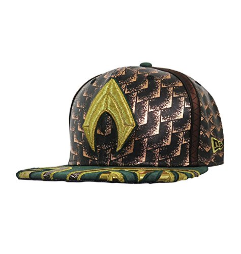 Binding : Apparel Product Description Fashionable Atlantean armor that can withstand thousands of pounds of pressure per square inch. Aquaman lives deep under the sea -- like, Mariana Trench deep. In order to survive pressure that would condense a wrecking ball into an ashtray, you have to have tough skin, and equally resilent outerwear. Aquaman's scaly mesh is woven with dense, naturally acquired underwater materials and highly advanced, form-fitting Atlantean fabrics -- attributes meticulously represented in our Aquaman Justice League Armor 59Fifty Fitted Hat. Made from a pressure-resistant 100% polyester, this LIMITED EDITION Aquaman hat from New Era reflects Aquaman's costume adorned during his return/reintroduction in the hit film, Justice League. How does this Aquman hat accurately convey Aquaman's undersea armor? A body thoroughly covered in illustrated, subtly orange and glistening scales. Stitched straps crisscrossing the body further exemplifying the movie-armor aesthetic. A bold, yellow, and embroidered Aquaman symbol bordered in green trim. The bill? Colored in weathered green, the bill is adorned with detailed embroidery reflecting Aquaman's codpiece. Under the bill? An image of Aquaman's movie symbol. Hey! What's on the back?? An embroidered Justice League movie shield overlaying the carefully printed scaling. The official New Era sticker? It's right there, resting soundly under the bill. The lining? A soft interior featuring floating Aquaman symbols, Justice League movie symbols and logos. All the dependable characteristics of a high quality New Era Hat: The embroidered New Era logo resting on the hat's right side. The stitched taping crisscrossing the hat's interior. The official New Era tag, also inside the hat! This fitted Aquaman Justice League hat is available in specific sizes for specific head shapes. 0