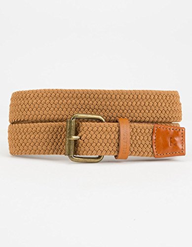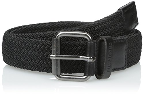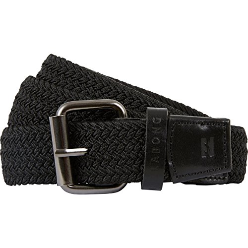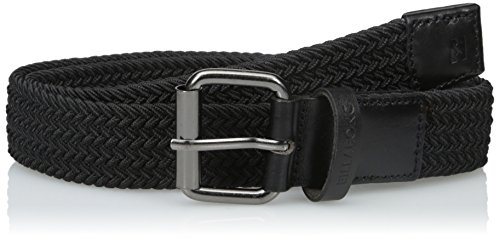 Stretch woven belt with leather contrast, Billabong font deboss on keeper and wave logo deboss on tip.