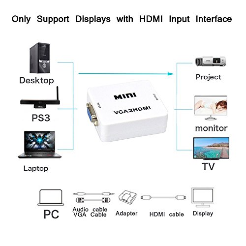 NAMEO VGA To HDMI, Mini HD 1080P 3.5mm Audio VGA To HDMI HD HDTV Video Converter Box Adapter VGA2HDMI for PC Laptop Dispaly Projector
