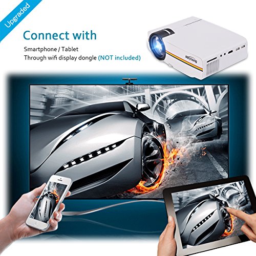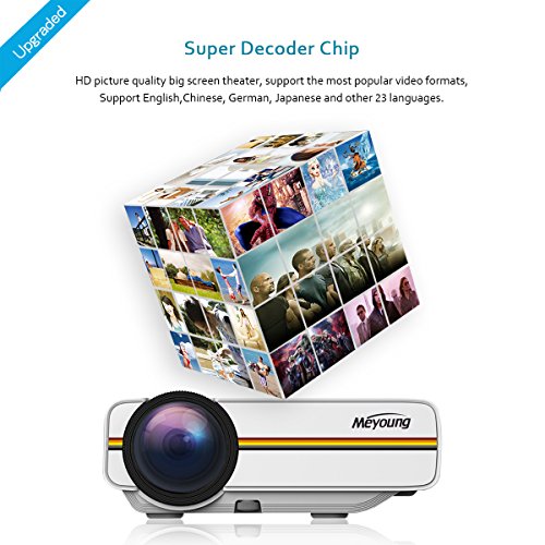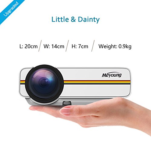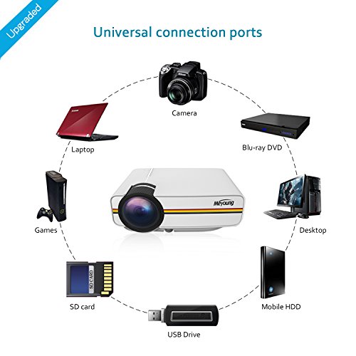 Meyoung portable projector perfect for connecting to any HDMI-enabled devices such as PCs, Laptops, Tablets, Blue-ray DVD player, Smartphones, Media players (Music, Pictures, Video, TXT).