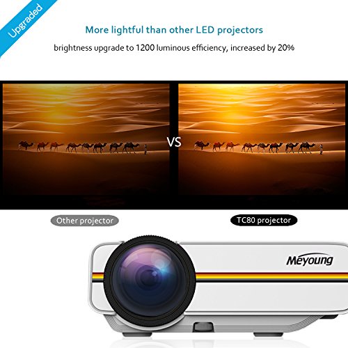 Meyoung Portable Projector 1080P 1200 Luminous Efficiency 150" for Outdoor Indoor Movie Night, Support Blu-ray DVD Player, Laptops, Tablets, Smartphones and HD Games (TC80 White)