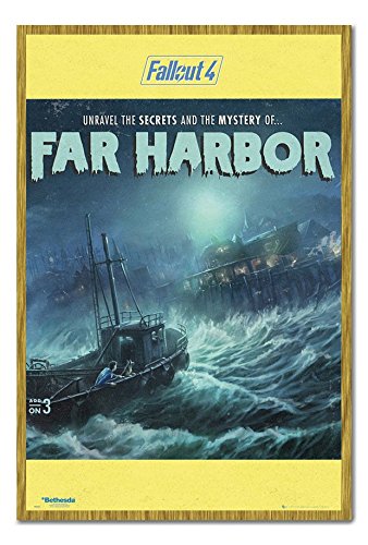 -. Title : Fallout 4 The Mystery Of Far Harbor Poster Magnetic Notice Board Oak Framed - 96.5 x 66 cms (Approx 38 x 26 inches)