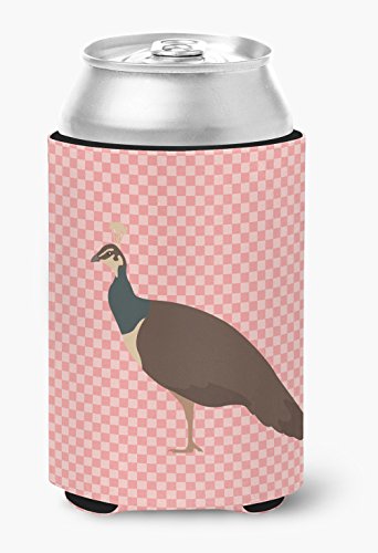 Caroline's Treasures BB7927CC Indian Peahen Peafowl Pink Check Decorative, Can Hugger, Multicolor