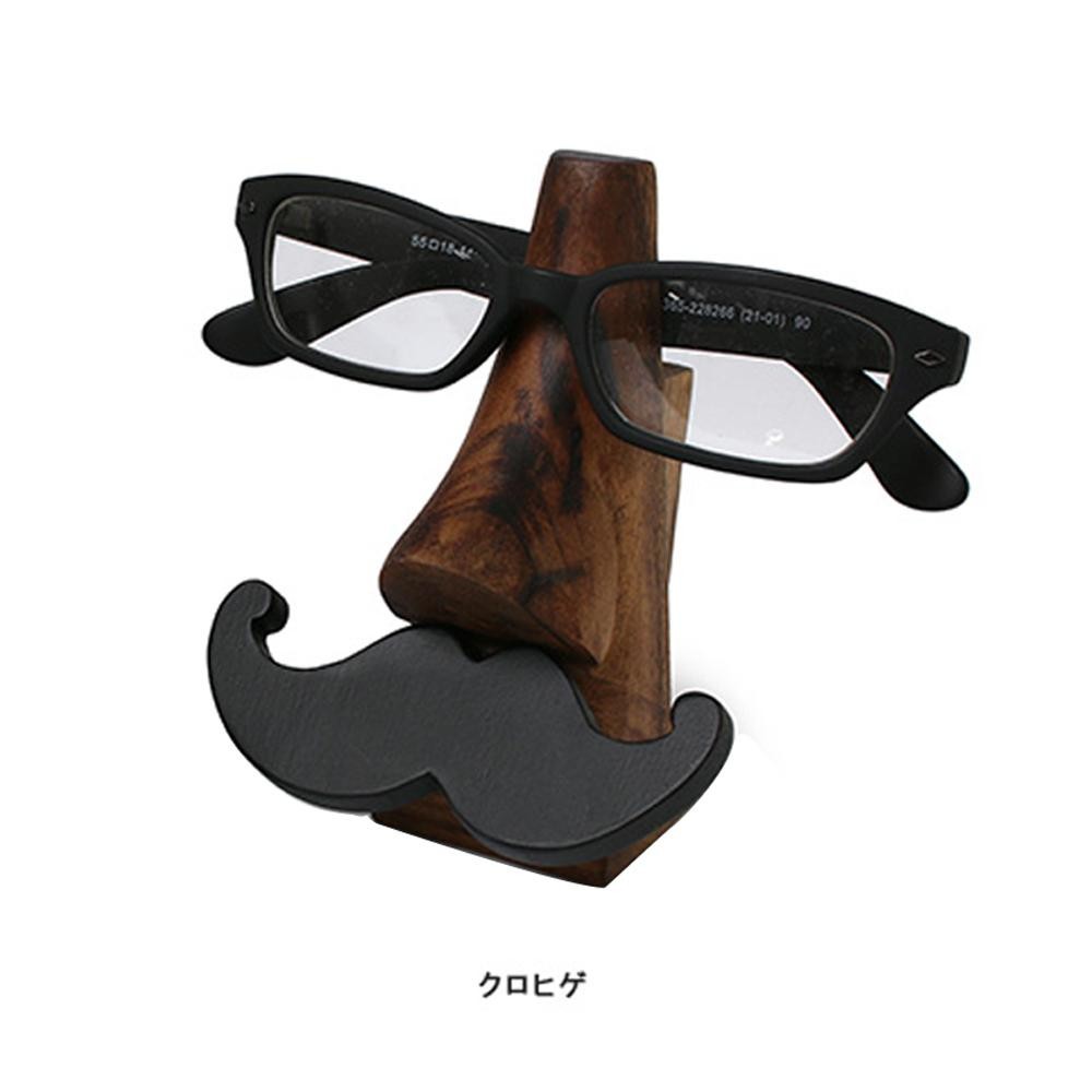 木のぬくもり感じる、ちょっと変わったデザインのメガネスタンドです。メガネを置くと、まるでメガネをかけているよう。