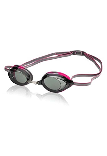 Speedo's top performance junior goggle designed to fit smaller, narrower faces with updated styling and 25% more peripheral vision