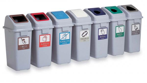 ゴミの種類に合わせて投入口を色分けした分別容器。