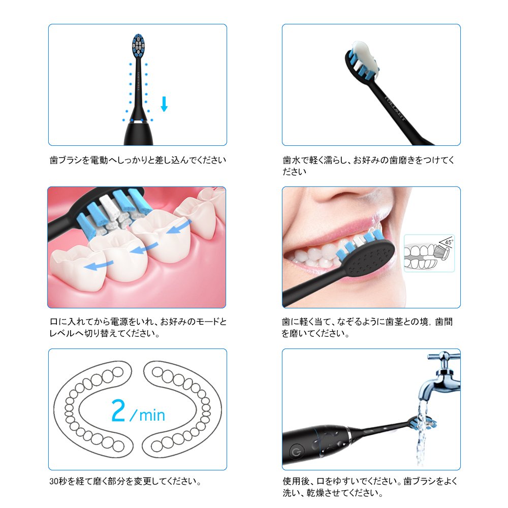 * Please turn on the electric toothbrush after putting it in your mouth so that toothpaste is not scattered.