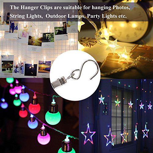 - These S hook clips are perfect for hanging Christmas lights, party lights, LED light strings, photos, copper wire, patio lights, lanterns, tents etc.