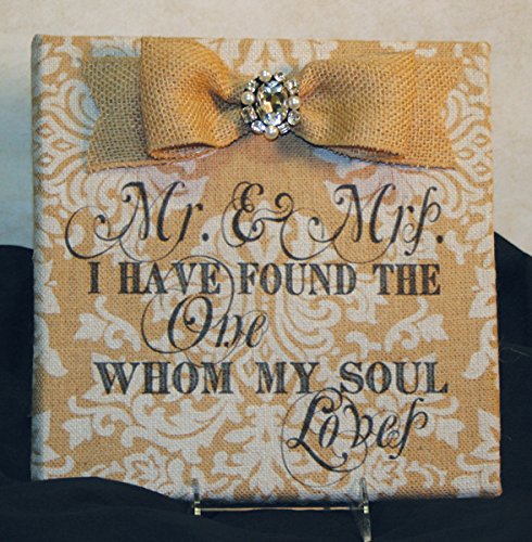 The Faith Collection I Found The One with Bow and Jewel Burlap Plaque, 10" x 10"